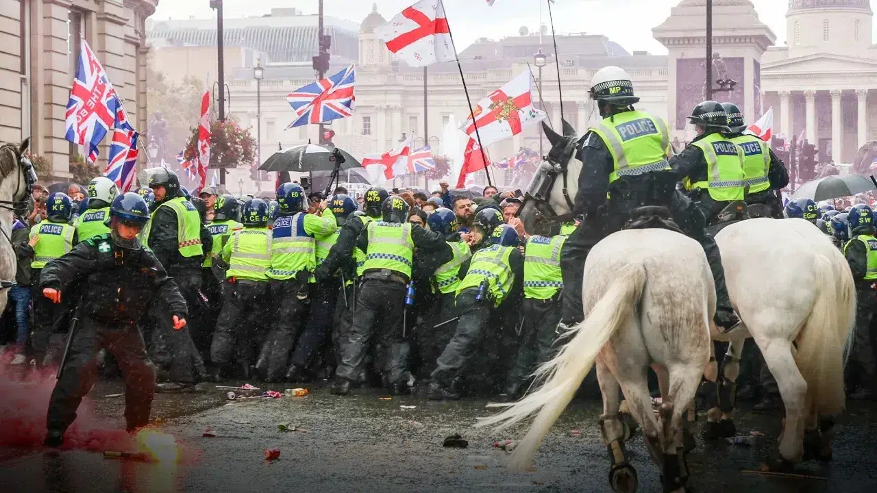 Protesto sırasında, aşırı sağcı göstericiler ile karşıt görüşlü yaklaşık 5 bin kişinin bulunduğu grup arasında polis tarafından kurulan barikatlar zorlandı. Londra polisi, bazı protestocuların polise karşı kabul edilemez derecede şiddet uyguladığını belirtti. İçişleri Bakanı Shabana Mahmood, yaşanan olayların ardından yaptığı açıklamada, suç işleyenlerin yargının tam gücüyle karşılaşacağını vurguladı.