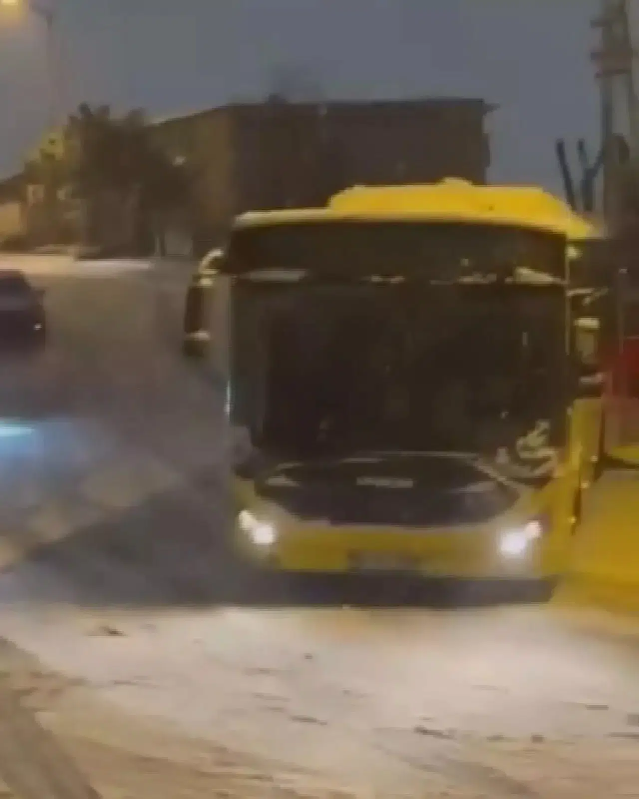 İstanbul'un Eyüpsultan ilçesinde sabah saatlerinde etkisini artıran kar yağışı, ulaşımı olumsuz yönde etkiledi. Yokuştan inen bir İETT otobüsü, kayarak kontrolünü kaybetti ve cadde üzerindeki bir elektrik direğine çarparak durdu. O anlar, çevredeki vatandaşlar tarafından cep telefonlarıyla kaydedildi.