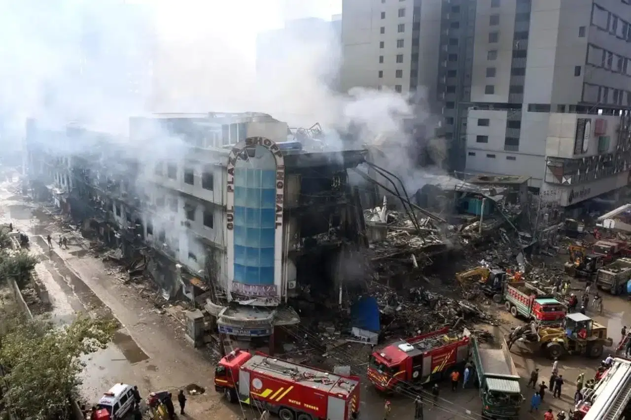 20 Ocak tarihinde yapılan açıklamalara göre, Karaçi'deki Gul Plaza Alışveriş Merkezi'nde cumartesi gece saatlerinde başlayan yangın, pazar günü itibarıyla 24 saatten fazla süren yoğun söndürme çalışmaları sonucunda kontrol altına alındı. Yangının çıkış nedeni ile ilgili olarak yapılan incelemelerde, elektrik kısa devresinin olası bir sebep olduğu üzerinde duruluyor. Yangın sonucu binanın büyük bölümleri ağır hasar aldı ve yapının dengesiz durumu, arama kurtarma ekiplerinin çalışmalarını zorlaştırıyor.