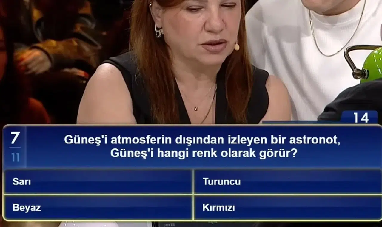 Programın son bölümünde yarışmacıların karşısına çıkan "Güneş'i atmosferin dışından izleyen bir astronot, Güneş'i hangi renk olarak görür?" sorusu, ekran başındakiler arasında kısa süreli bir kafa karışıklığı yarattı. Sarı, beyaz, turuncu ve kırmızı seçenekleri arasında kalan izleyiciler, cevabın doğruluğunu teyit etmek için arama motorlarına akın etti. Bilimsel verilere göre, atmosferin filtreleme etkisi olmaksızın Güneş, uzay boşluğundan bakıldığında aslında beyaz renkte görünmektedir.