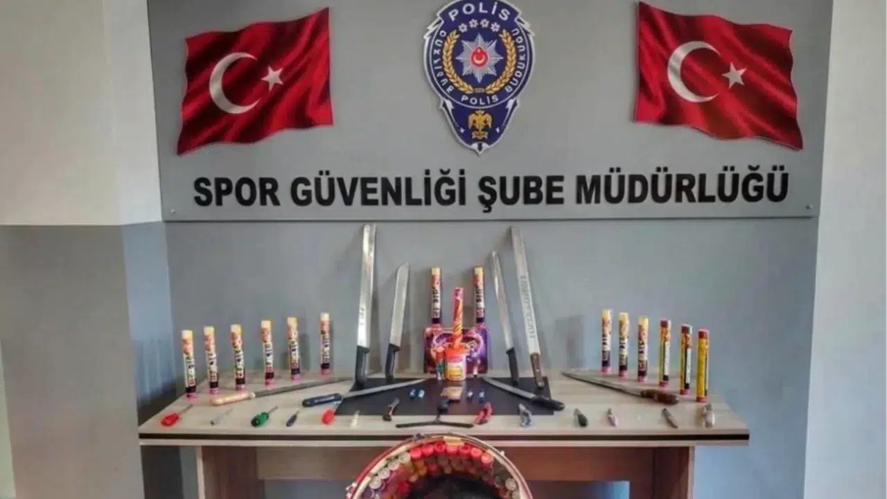 Sadece patlayıcılarla sınırlı kalmayan aramada, spor müsabakalarında kullanılması kesinlikle yasak olan çok sayıda delici ve kesici alet de ele geçirildi. Polis ekipleri, 8 adet döner bıçağı, 1 adet büyük satır, 13 bıçak ve 1 adet kelebek bıçağa el koydu.