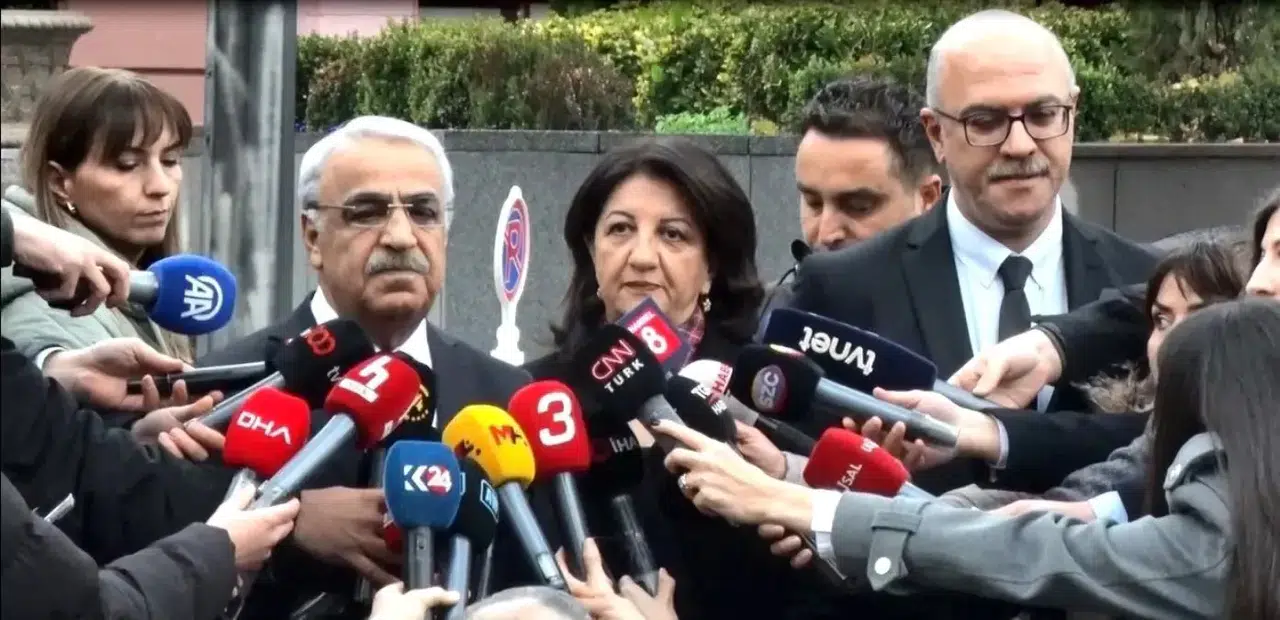 DEM Parti Van Milletvekili Pervin Buldan, Şanlıurfa Milletvekili Mithat Sancar ve avukat Faik Özgür Erol'dan oluşan heyet, Adalet Bakanlığı'nda yaklaşık iki saat süren bir görüşme yaptı. Toplantının içeriğine ilişkin açıklamalarda bulunan Mithat Sancar, gündemdeki adalet ve hukuk sorunlarına dair detaylı bir değerlendirme yapıldığını belirtti. Sancar, "Yürümekte olan süreçle ilgili hukuksal düzenlemeler konusunda fikir alışverişinde bulunduk. Adalet Bakanlığı'nın hazırlıkları hakkında bilgi aldık ve önerilerimizi sunduk. Barış, ancak adalet zemininde ve hukuksal güvencelerle kalıcı hale gelebilir" ifadelerini kullandı.